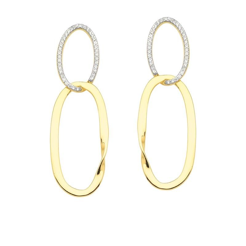 BRINCO OVAL TORCIDO COM PEDRAS DE ZIRCÔNIA